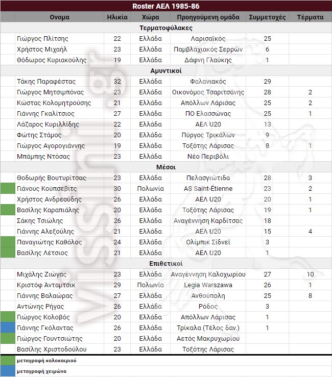 17η αγωνιστική : 26/1/1986 : ΑΕΛ - Απόλλων Καλαμαριάς 1-0
